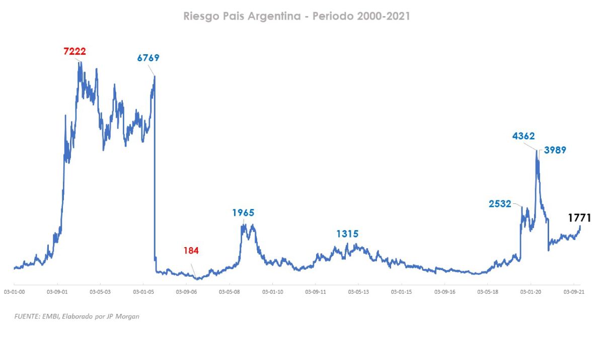 Recordemos que estamos viendo el Riesgo País más alto desde septiembre del 2020, cuando el país reestructuro la deuda con los acreedores privados por más de USD100.000 millones de dólares, en donde el gobierno alcanzó la adhesión de más del 90% de los acreedores y así evito un default seguro. Pero esto habría sido insuficiente para mejorar las expectativas en el mercado, porque el riesgo país en lugar de retroceder por cierta “pax” este creció en más de 700 puntos en el tiempo, esto estaría demostrando que la debilidad macroeconómica en conjunto con medidas políticas desafortunadas anularon cualquier efecto positivo del canje de la deuda.