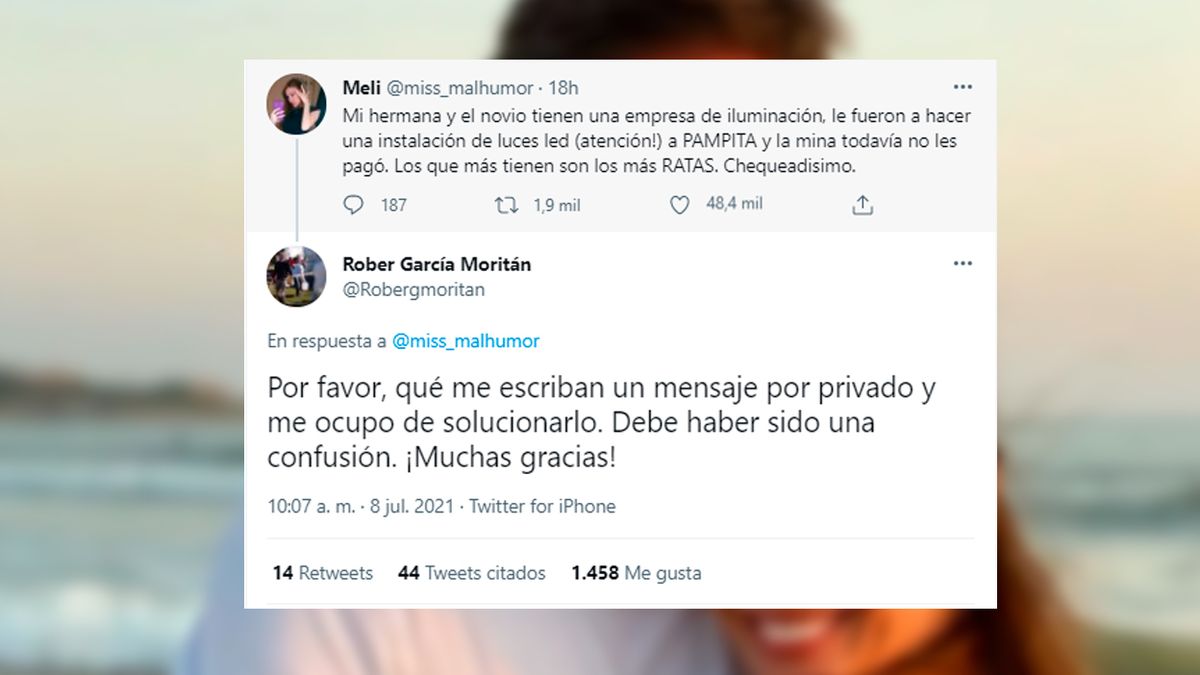 El empresario, en tanto, se comprometió a gestionar los pagos adeudados. "No me deja escribirte por privado. Recordame la empresa por favor y los contacto para ver qué pasó. ¡Gracias!", manifestó Moritán.