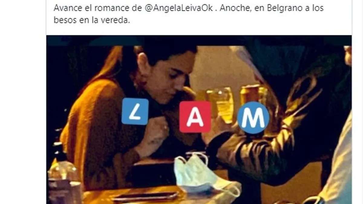 El sábado, Ángel de Brito publicó en Twitter una imagen de una salida de la cantante tropical con el productor, que confirma la relación: "Avanza el romance de Angela Leiva, anoche, en Belgrano, a los besos en la vereda", precisó el conductor de "LAM". A lo que el Chato Prada comentó: "Opa".