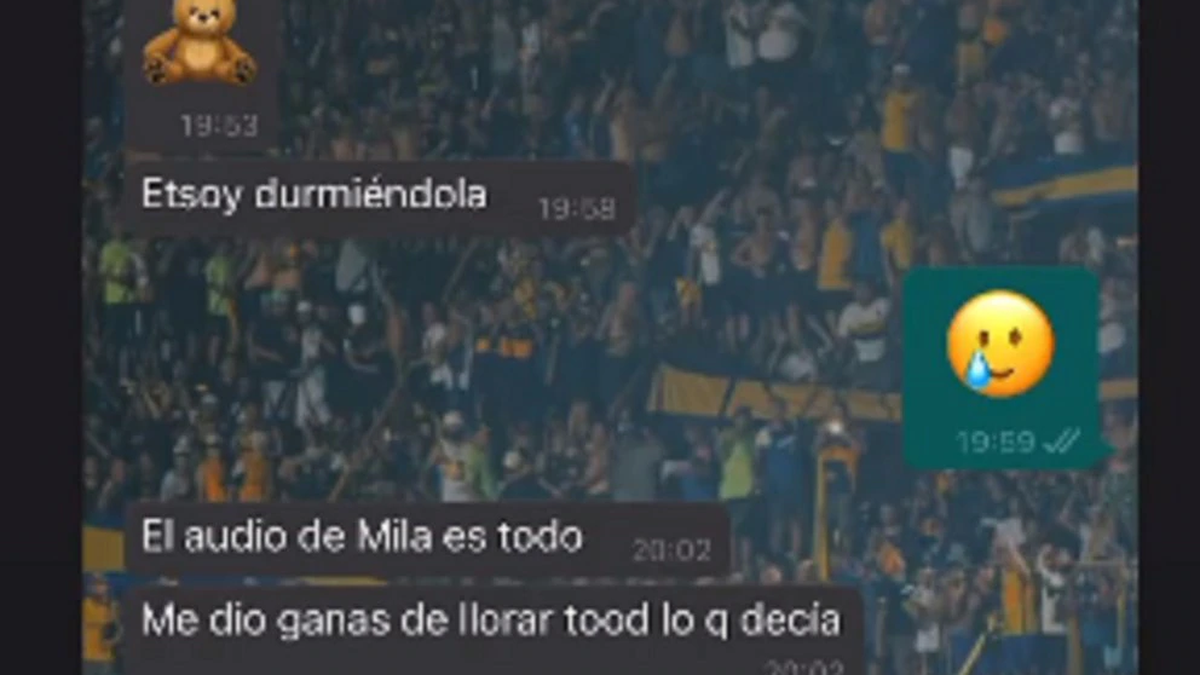 Meme también subió a las redes una captura de una conversación con su pareja. "El audio de Mila es todo. Me dio ganas de llorar por todo lo que decía. Se me parte el corazón. Ella me dijo todo eso de la nada. Más buena....", le dice el DJ a la modelo en un chat.