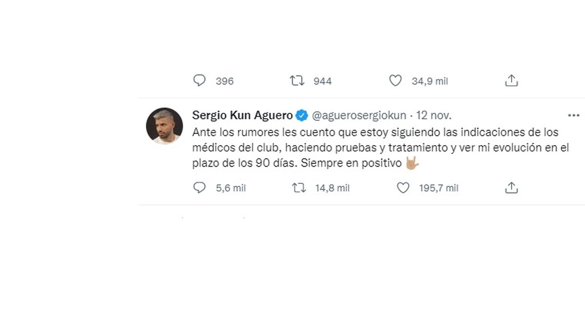 Sergio El Kun Agüero llevó tranquilidad hace unos días con un mensaje desde las redes sociales luego del episodio de salud que vivió en pleno partido. El delantero del FC Barcelona se tomó el pecho y se tiró al piso luego de protagonizar una acción normal de partido. Luego de ser asistido por los médicos del club, se pidió su cambio y se retiró caminando del campo de juego.