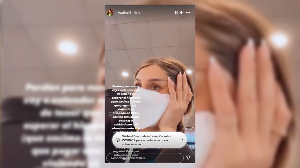 La diseñadora debió someterse a un hisopado y aguardar el resultado para poder retirarse del aeropuerto. La situación le resultó sumamente incómoda e innecesaria y lo hizo saber en un posteo en sus historias en Instagram.
