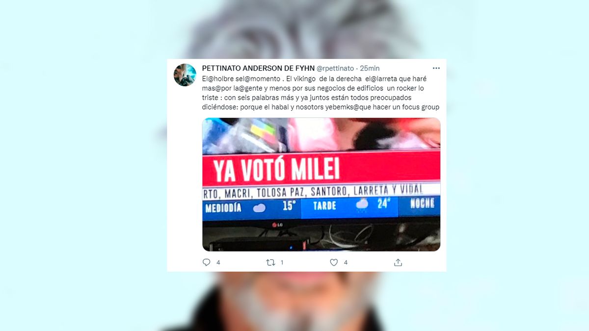 Roberto Pettinato descolocó a sus seguidores en las redes sociales, en medio de las Elecciones 2021. El ex Sumo subió un mensaje encriptado haciendo referencia a Javier Milei, el precandidato a diputado por Avanza Libertad en la Ciudad de Buenos Aires.