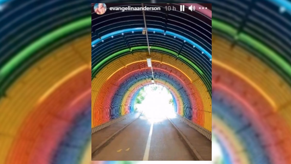 "Ésta es la entrada del cole. Todos los alumnos tienen que pasar por el túnel del arcoíris para ingresar", comentó la botinera y colgó la foto del ingreso a la escuela.