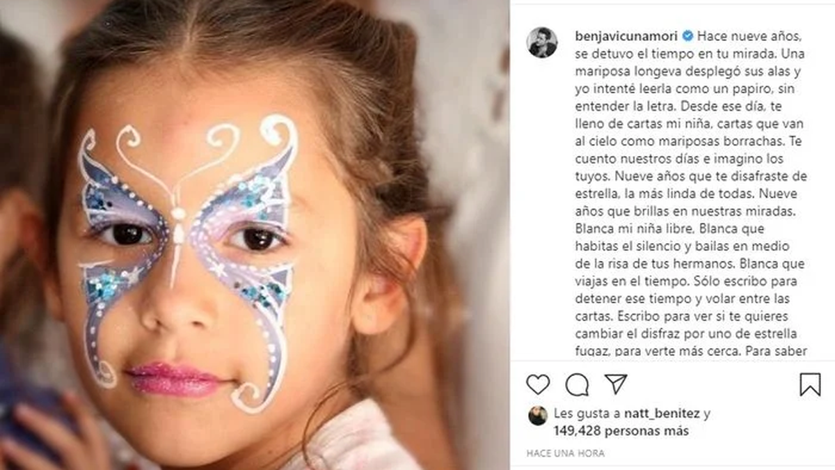 Benjamín Vicuña homenajeó a Blanca Vicuña con un mensaje desgarrador desde las redes sociales. Como cada 8 de septiembre, el actor le dedica palabras del corazón a su hija, quien falleció el 8 de septiembre de 2012. Se trata de uno de los hijos que el actor tiene con Carolina "Pampita" Ardohain (Bautista, Beltrán y Benicio).