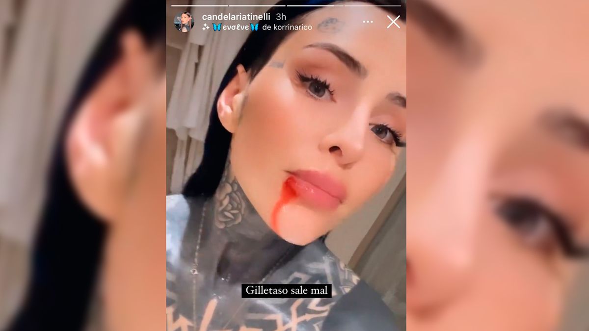 La hija de Marcelo Tinelli no dio más detalles de lo ocurrido. De todos modos, a juzgar por las imágenes del video, solo se trató de un corte superficial en la comisura de los labios.