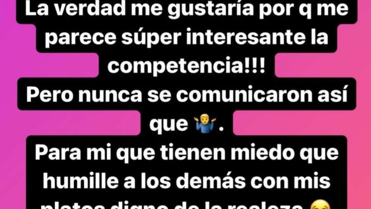 En las preguntas y respuestas de Instagram, uno de sus seguidores le preguntó su iba a estar en el reality y la rubia contestó: “La verdad me gustaría, porque me parece súper interesante la competencia…pero nunca se comunicaron, así que para mí tienen miedo que humille a los demás con mis platos dignos de la realeza”.