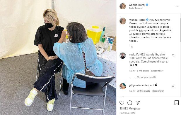 Wanda Nara mostró cómo la vacunaron en París contra el coronavirus y expresó su deseo para nuestro país. En Europa la vacunación viene avanzada en gente joven, es por eso que la rubia de 34 años pudo darse la inyección contra el covid-19, el virus que tiene en vilo al mundo desde hace más de un año y medio.
