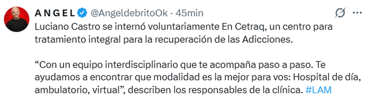 Ángel de Brito reveló detalles cruciales sobre la internación de Luciano Castro y llevó claridad sobre el cuadro que atraviesa el actor, luego de que la noticia generara preocupación y múltiples especulaciones. La información se conoció en las últimas horas y rápidamente se convirtió en tema de conversación tanto en redes sociales como en los medios de espectáculos.
