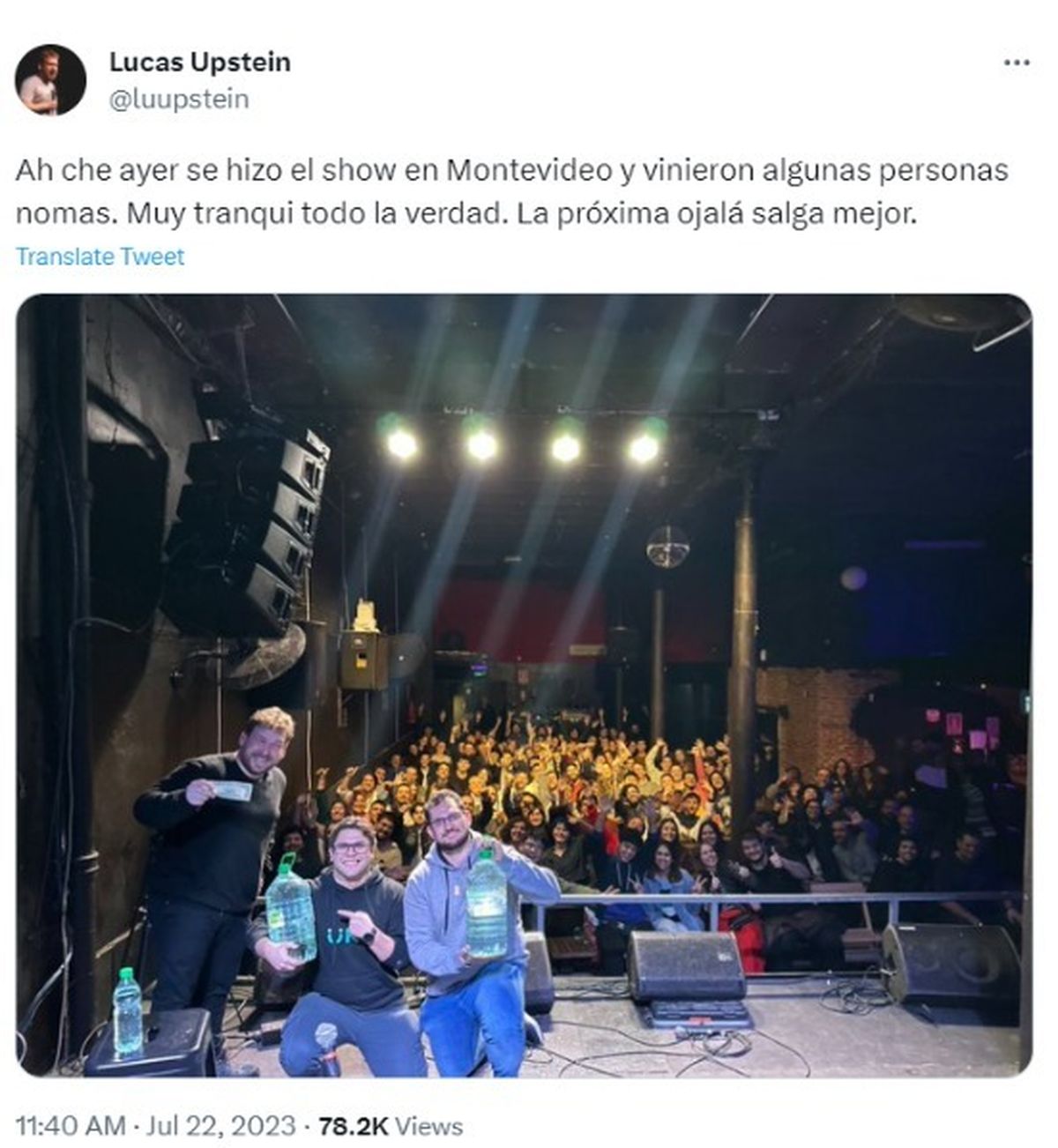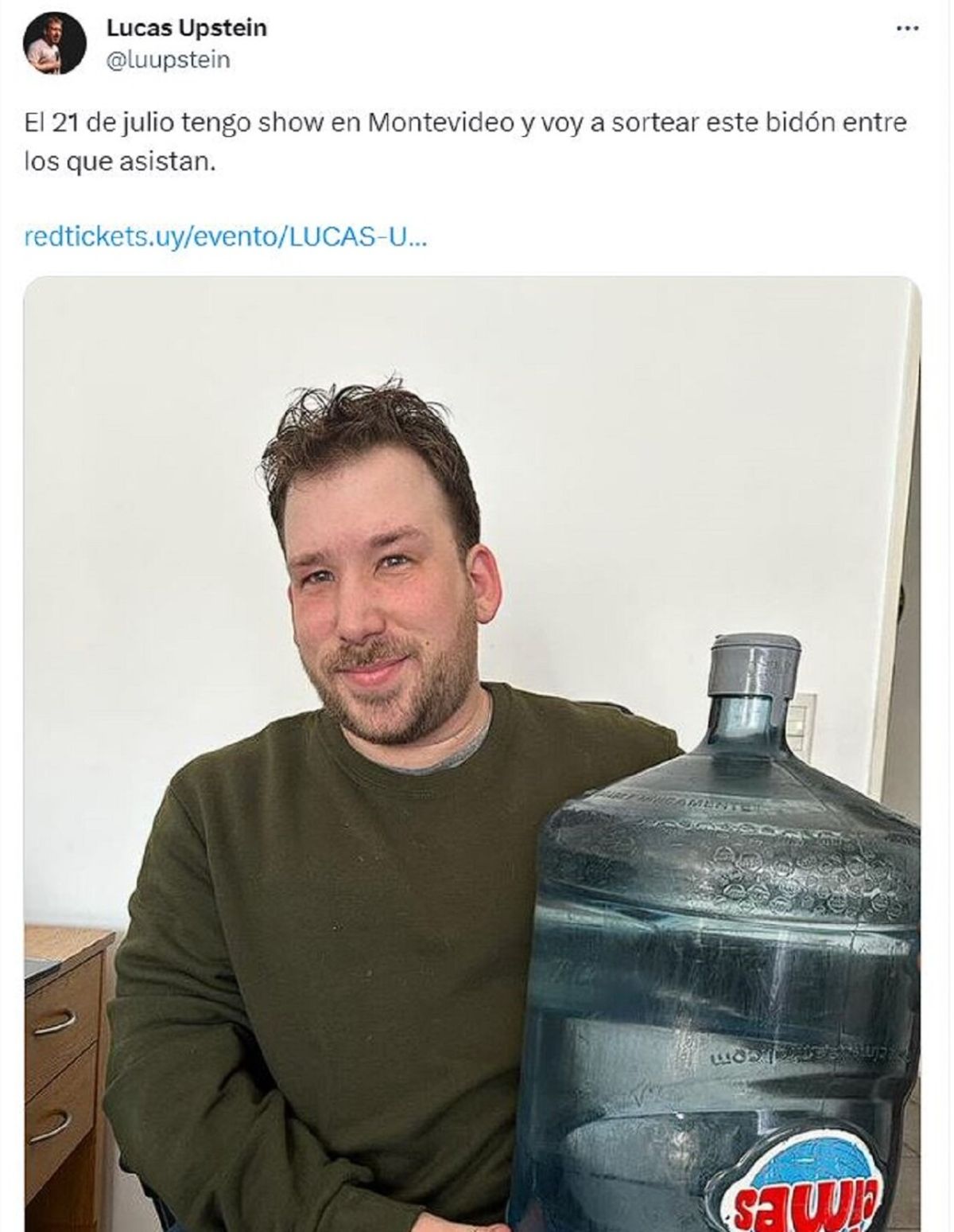 La crisis hídrica en Uruguay no es un tema para reírse, sin embargo un humorista argentino decidió hacer humor (inofensivamente) sobre el tema, y para promocionar su show en el país vecino, publicó en Twitter que iba a sortear bidones de agua, a modo de burla por la escasez que azota a Montevideo debido a la sequía.
