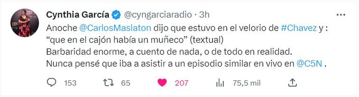 Carlos Maslatón es uno de los nuevos integrantes de la mesa de Duro de Domar, el histórico programa que volvió a C5N. En el nuevo panel también está la periodista militante Cynthia García, con quién Maslatón tuvo ayer un duro cruce relacionado con la muerte del ex presidente de Venezuela, Hugo Chávez.