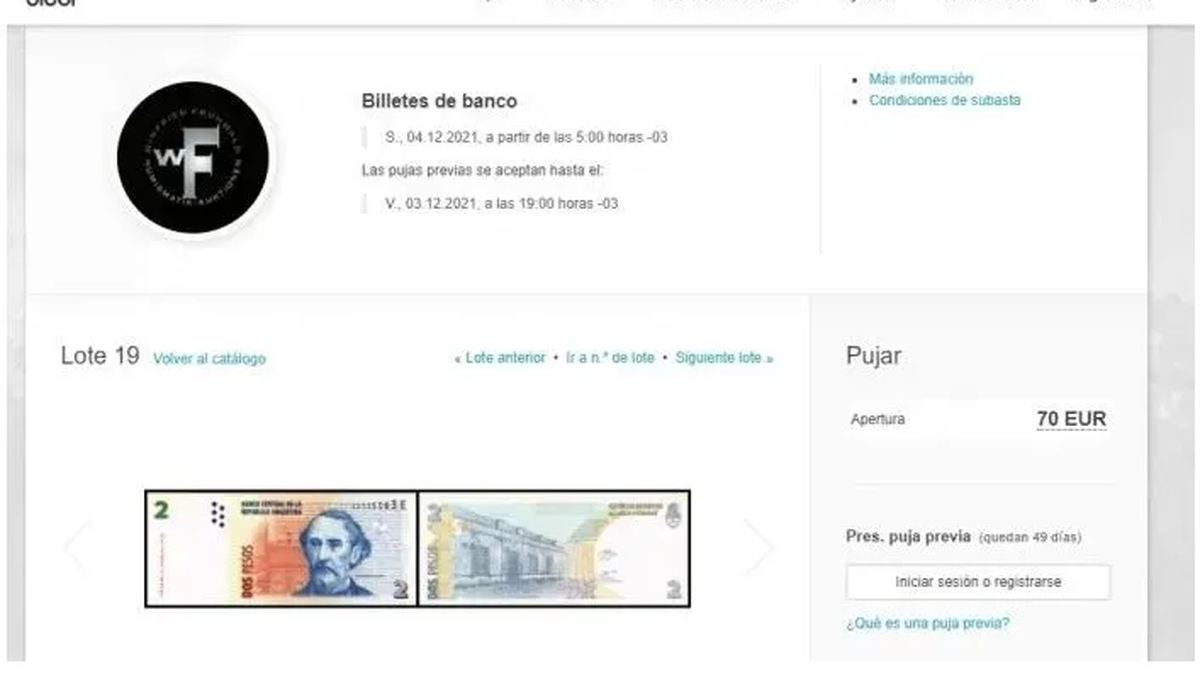 Mientras algunos no le dan demasiado valor y lo dejaron olvidado, otros lo cotizan de muy buena forma y lo quieren como “souvenir”. ¿De qué se trata? Del billete de dos pesos argentino que tiene la cara del ex presidente Bartolomé Mitre, que se vende en el exterior a un precio de base de 70 euros de acuerdo al relevamiento realizado por el portal de subasta online Biddr.com.