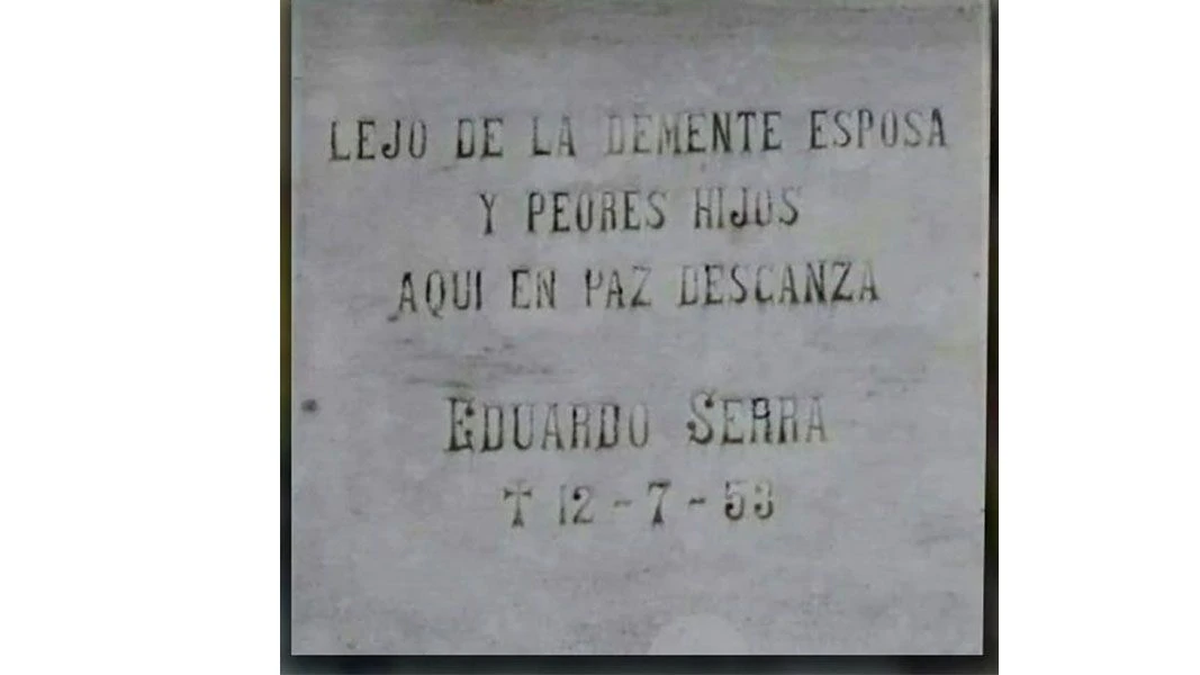 “Lejos de la demente esposa y peores hijos. Aquí en paz descansa. Eduardo Serra 12-7-53”, es la descripción que se puede leer en la placa de mármol que publicó un usuario de Twitter conocido como Ariel Mun.