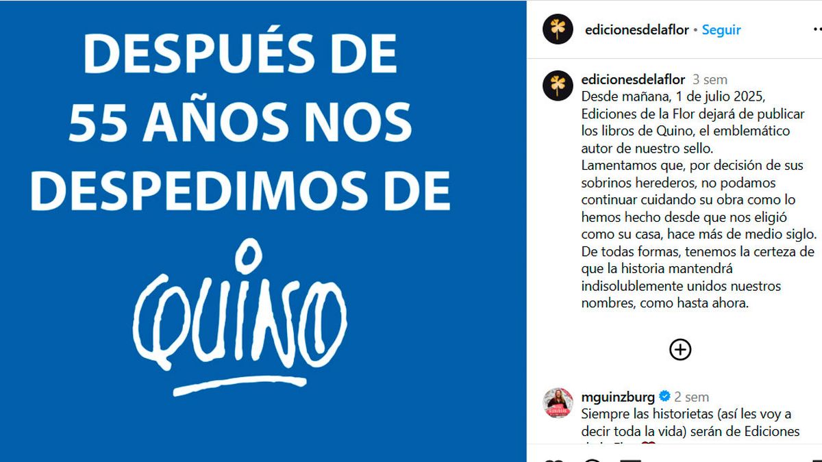 Después de 55 años de relación, la editorial argentina Ediciones de la Flor anunció que ya no publicará más libros de Quino, el legendario creador de Mafalda. La noticia generó sorpresa e indignación entre lectores, libreros y fanáticos de la historieta, ya que se trataba de una sociedad histórica entre la editorial y el autor mendocino fallecido en 2020.