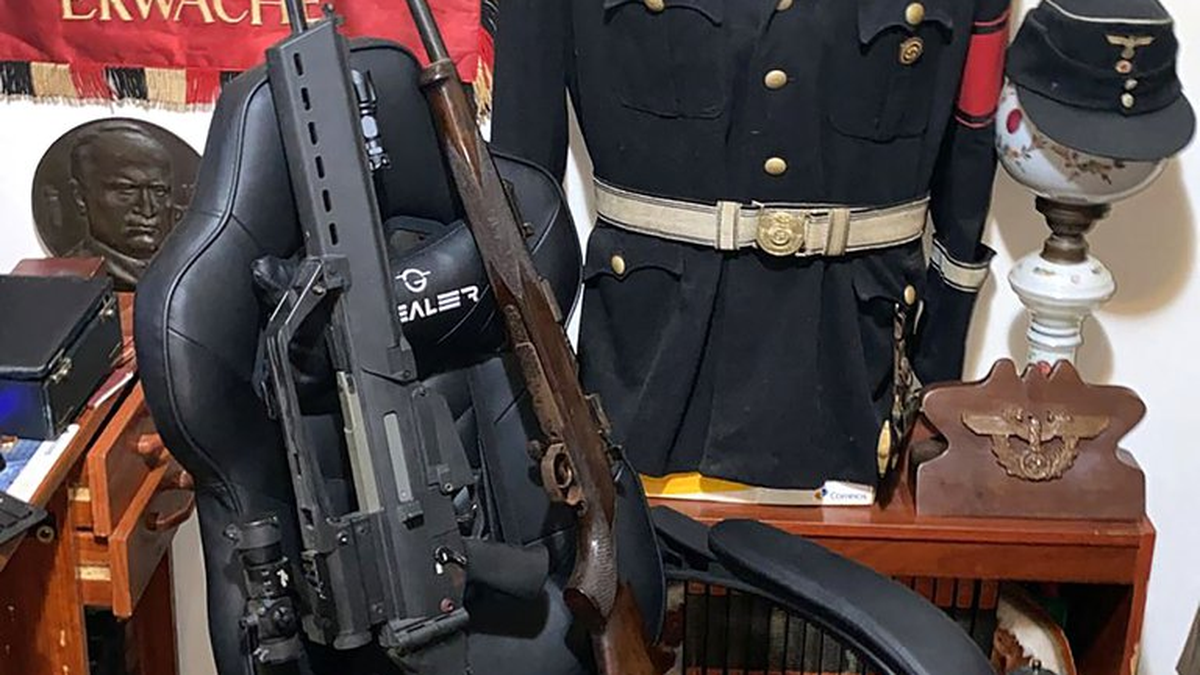 Fueron más de 1.000 artículos descubiertos por la policía en la casa del sospechoso de 58 años. Entre los elementos que encontraron había uniformes nazis, publicaciones, pinturas, insignias, imágenes de Adolf Hitler, banderas, medallas del Tercer Reich, armas y municiones de la época.
