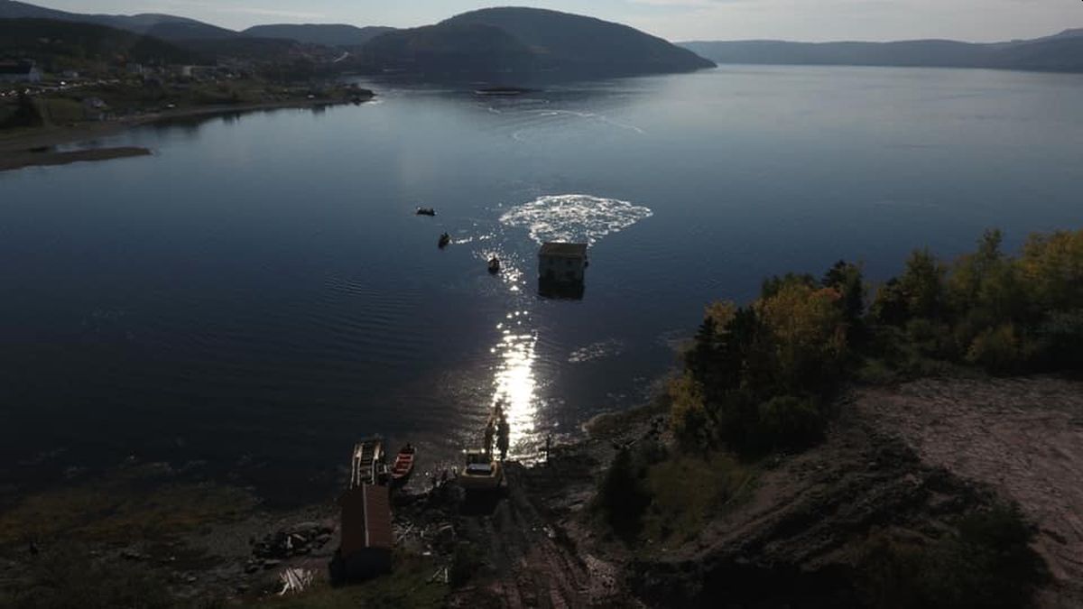 A mitad de camino una de las embarcaciones sufrió una avería, lo que provocó que el inmueble perdiera estabilidad y se inclinara, comenzando a hundirse en el mar.