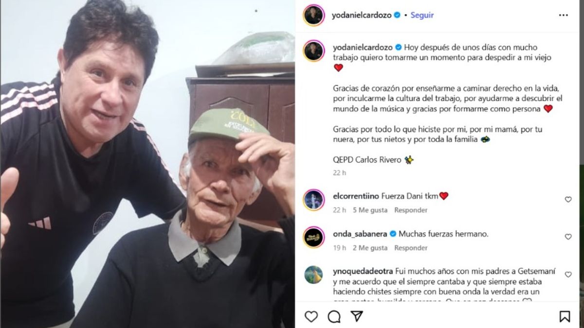 En el mismo mensaje, el músico agregó:“Gracias por todo lo que hiciste por mí, por mi mamá, por tu nuera, por tus nietos y por toda la familia . QEPD Carlos Rivero”.