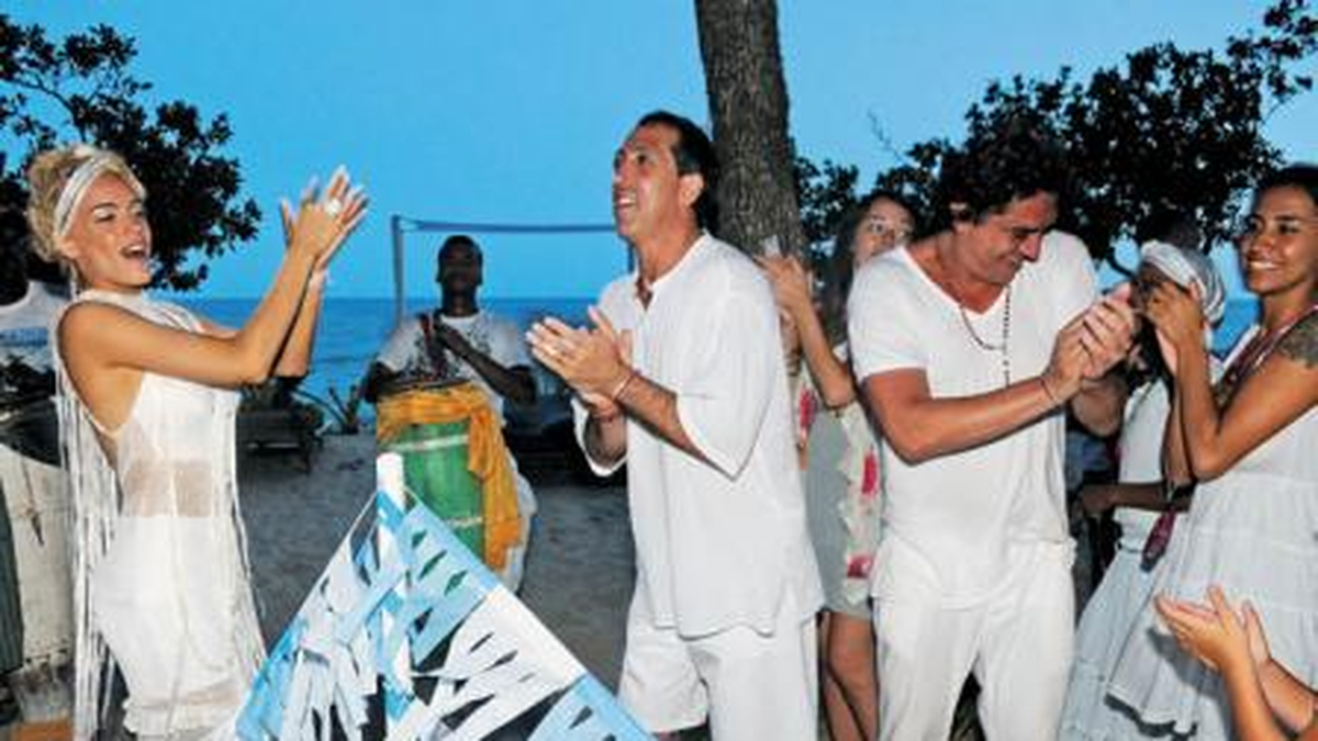 Luego de la ceremonia en la iglesia, la pareja fue a orillas del mar donde se arrodillaron en la arena frente al mar para darle una ofrenda a Iemanjá. En ese momento arrojaron rosas blancas al mar y deseos de felicidad.