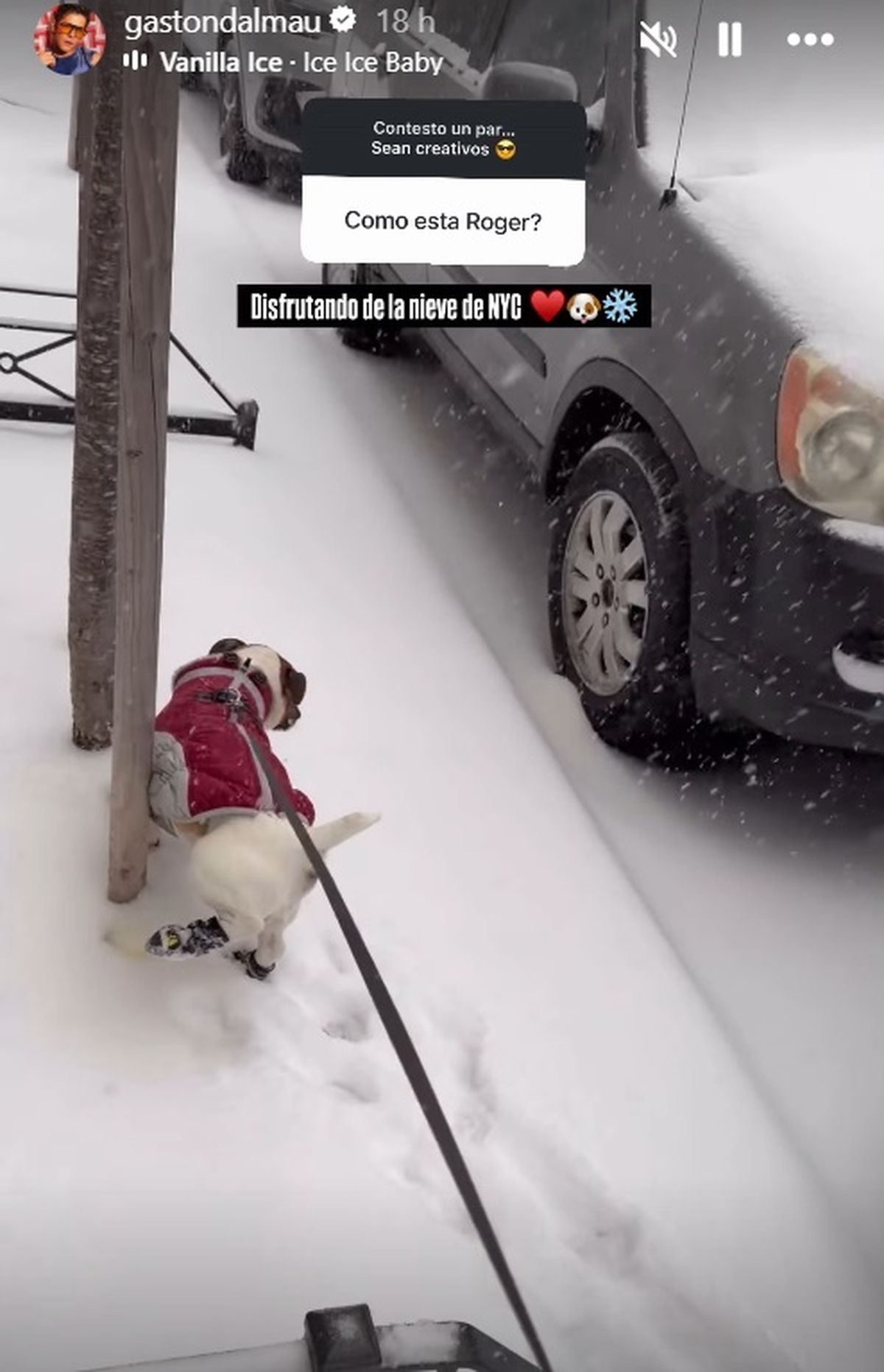 Uno de sus perros, Roger, se volvió especialmente popular en redes sociales, donde acumula más de dos mil seguidores en Instagram. En las últimas horas, el propio actor compartió desde sus historias una imagen de su mascota desde la distancia y escribió: “Disfrutando de la nieve de NYC”, reflejando el vínculo afectivo que aún mantiene con su vida en Nueva York.